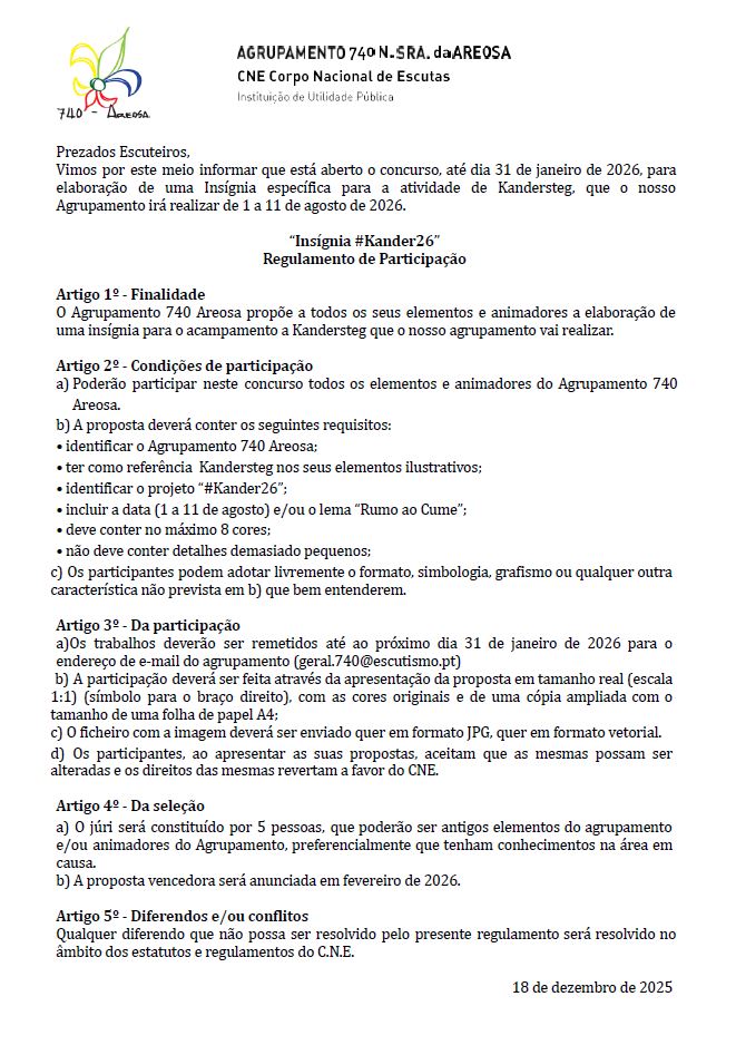 O Escutismo é um Movimento Mundial, de carácter não político, aberto a todos, com o propósito de contribuir para a educação integral dos jovens de ambos os sexos, baseado na adesão voluntária a um quadro de valores expressos na Promessa e Lei escutistas, através de um método original que permite a cada jovem ser protagonista do seu próprio crescimento, para que se sinta plenamente realizado e desempenhe um papel construtivo na sociedade.